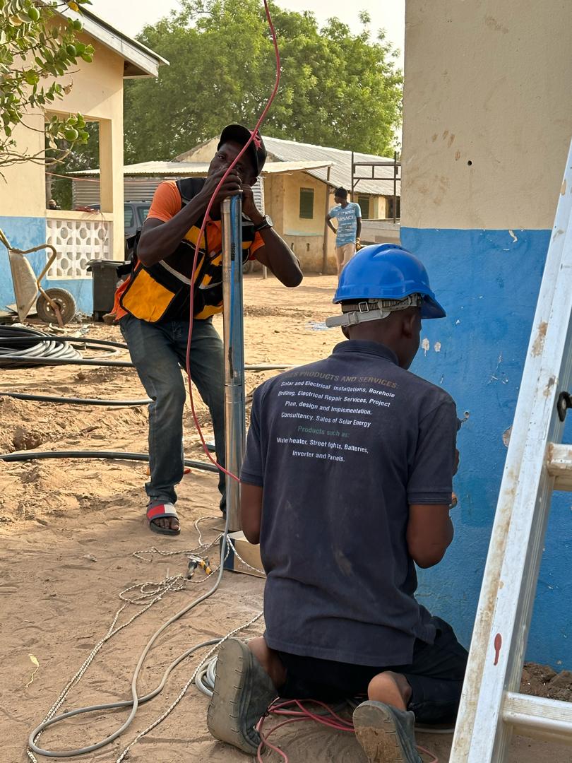 Njau is een dorp gelegen in het binnenland op de North Bank ( zie rode markering op de kaart) Er werd een semi-industriële put geboord. Er werd een Grunfos pomp geïnstalleerd die aangedreven wordt door zonne-energie. Om de tijd te overbruggen dat de zon niet schijnt werd er op een stevige metalen toren en 5000 l tank geplaatst. De tank was vol in ongever 1 uur pompen. Nadien werden de nieuwe duurzame waterinstallatie verbonden met het intern watersysteem van het ziekenhuis In het ziekenhuis gebeuren er ongeveer 50 bevalingen per maand en 45 patiënten per dag komen er voor onderzoek en behandeling .Er werd ook 1 tap geplaatst voor de dorpelingen en 1 om te tuinieren .